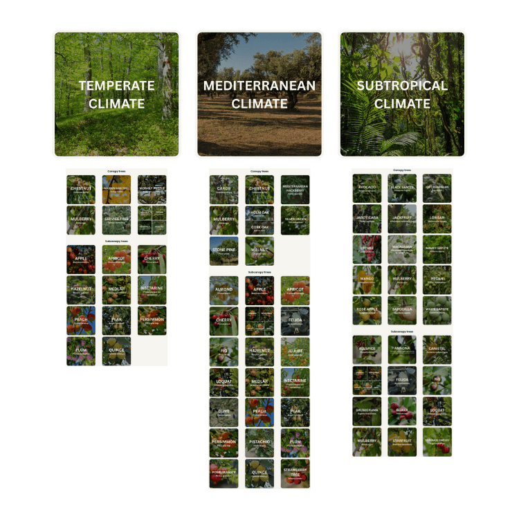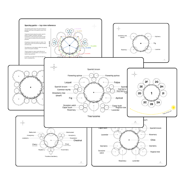 I refined these layouts across different climates — from temperate to Mediterranean and subtropical — both on my own sites and while helping others design their food forests.